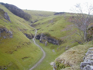 Cave Dale viewed from aboveI was alone in the hard limestone fields above Cave Dale when I saw a runner in the distance and thought I'd keep them in sight, or maybe even catch them. Little did I know it would be a suffering Ritchie C. Well, I guess it was only 4 weeks ago that he ran 103 miles with 33,000' ascent in the UTMB so he probably has a good excuse for being caught by me! :-)